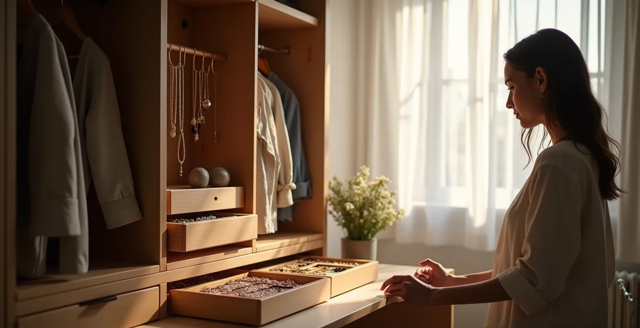 - Inventur: Nehmen Sie alle Accessoires aus Ihrer Schmuckschatulle, kategorisieren Sie sie (Ringe, Ketten, etc.) und legen Sie sie übersichtlich aus.